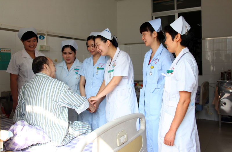 “市十佳护士”曹九英,在一次劝患者小李吃药时,竟然遭到小李泼尿,全身又脏又臭,但她并没有发怒嫌弃,而是继续好言劝说患者服药。几个月后,小李痊愈出院,特意找曹护长道歉,这样的例子还有很多很多。每当医护人员看到患者康复出院,都感到十分欣慰,觉得自己的工作有价值、有意义!